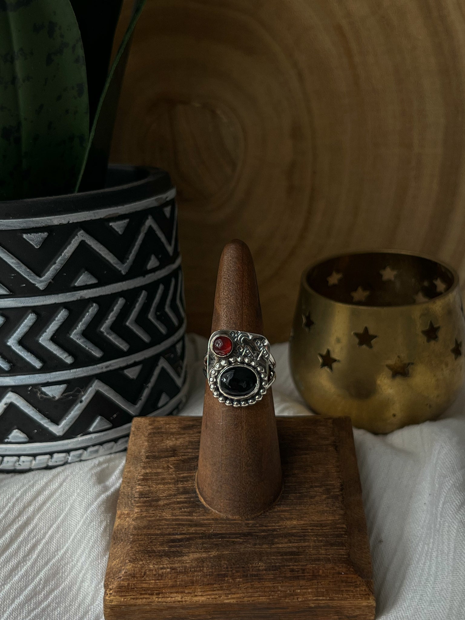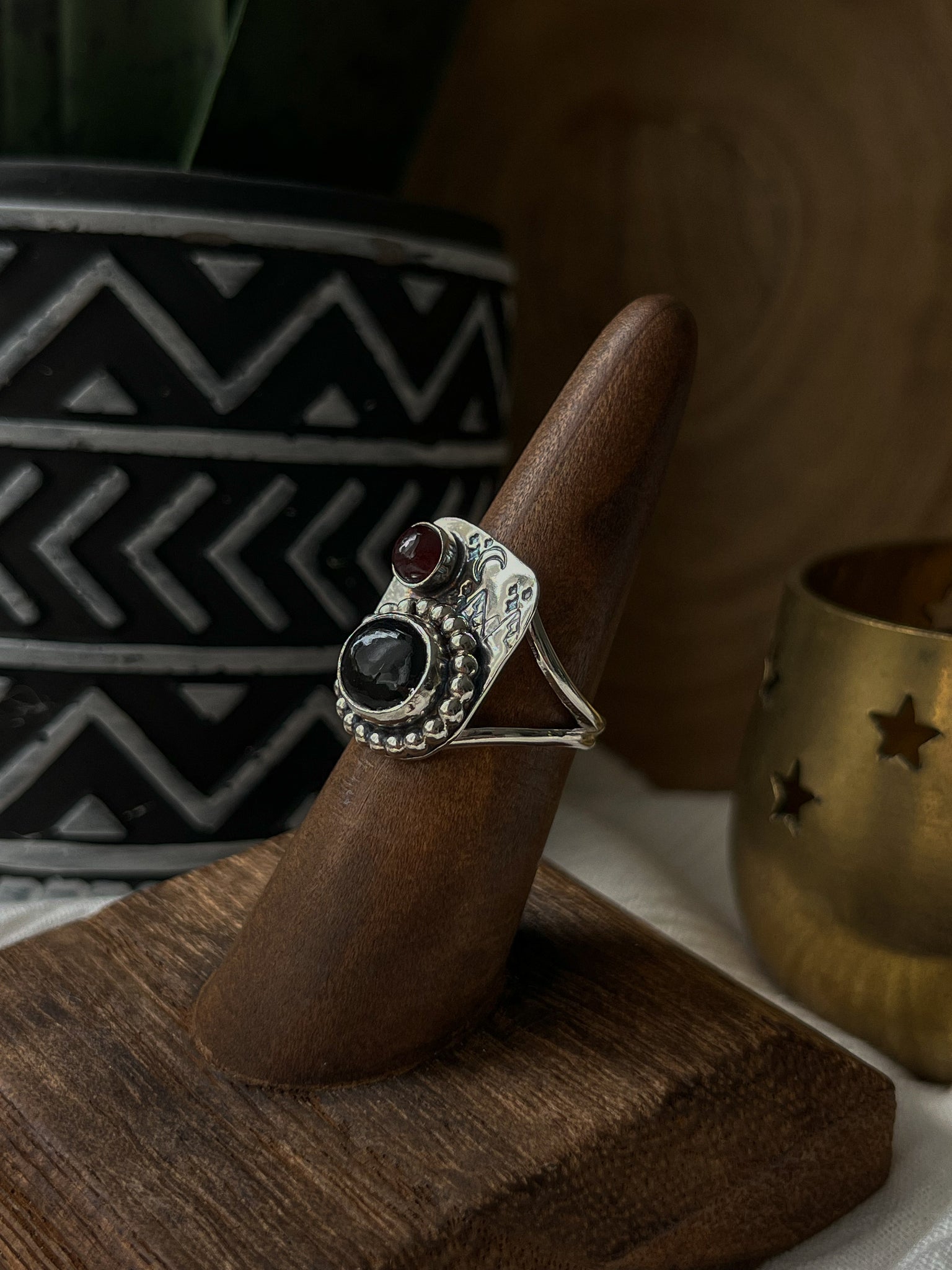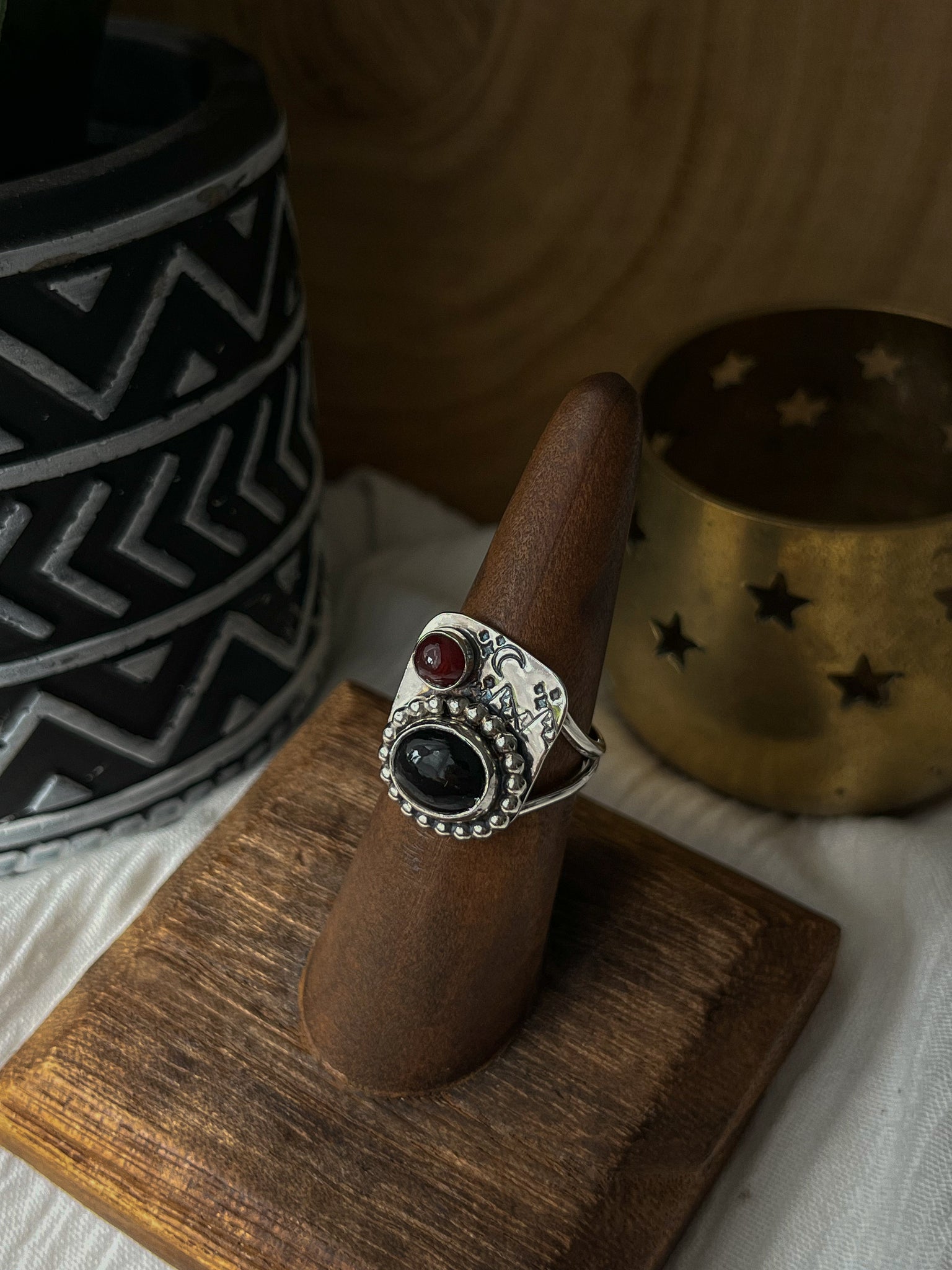 This story teller ring features a night sky, crescent moon and mountains representing the beauty of the night <3